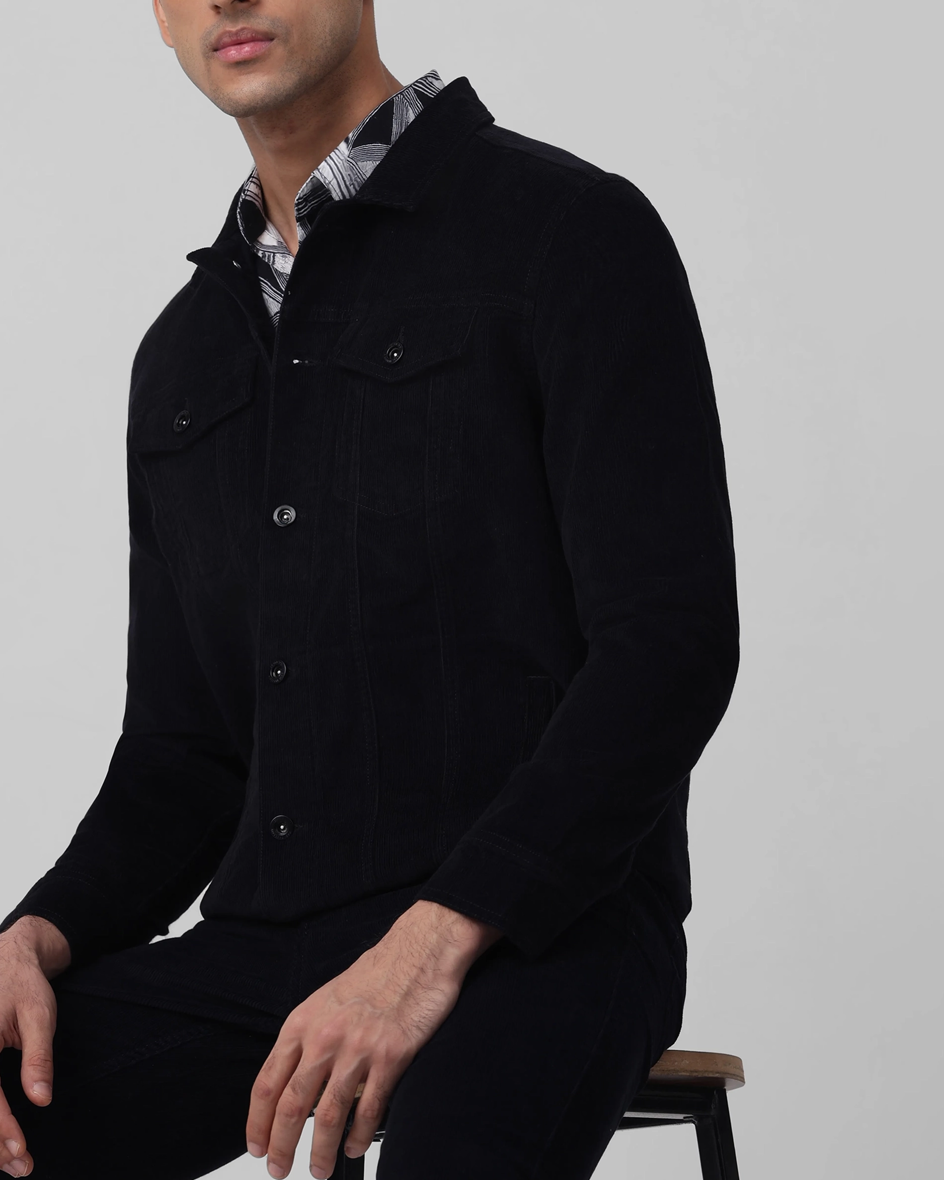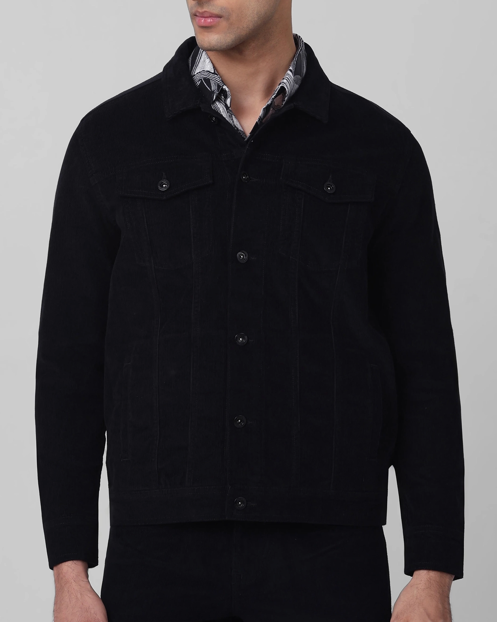 Versatile Comfortable Slim-Fit Navy Corduroy Jacket